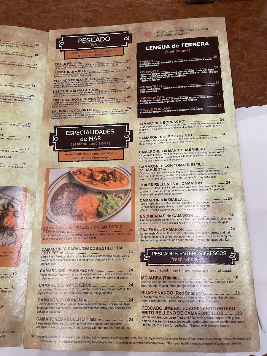 Camarones con Rajas y Crema. Large fresh Mexican Gulf shrimp, sauteed in olive oil, onions, and fresh roasted pasilla strips in a cream sauce.